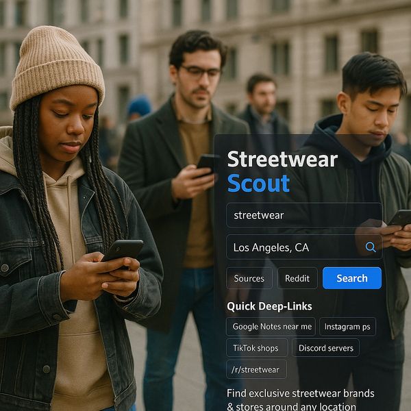 Powered by live intel from Reddit, Google Places, SerpAPI, and social deep-links (Instagram, TikTok, Discord), Streetwear Scout makes it simple to: